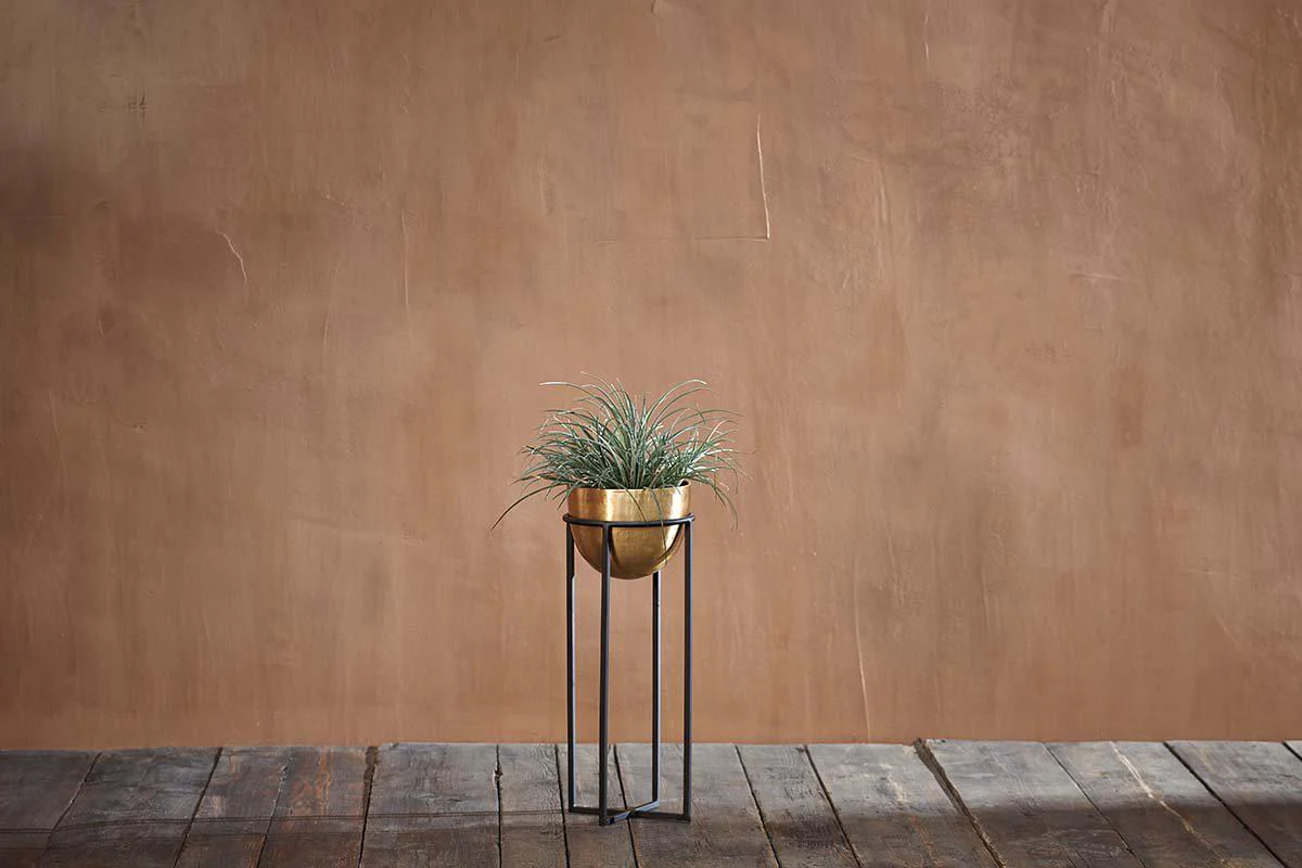 Decorative planting makes a stunning interior feature and the warm brass tones of these striking Atsu standing planters will add an opulent feel to an indoor space. The brass planter is shaped using traditional tools and features a tactile, imperfect finish. The planter sits neatly in a solid iron stand. Style in an entrance hall, living space or bathroom for an eye-catching, decorative touch.