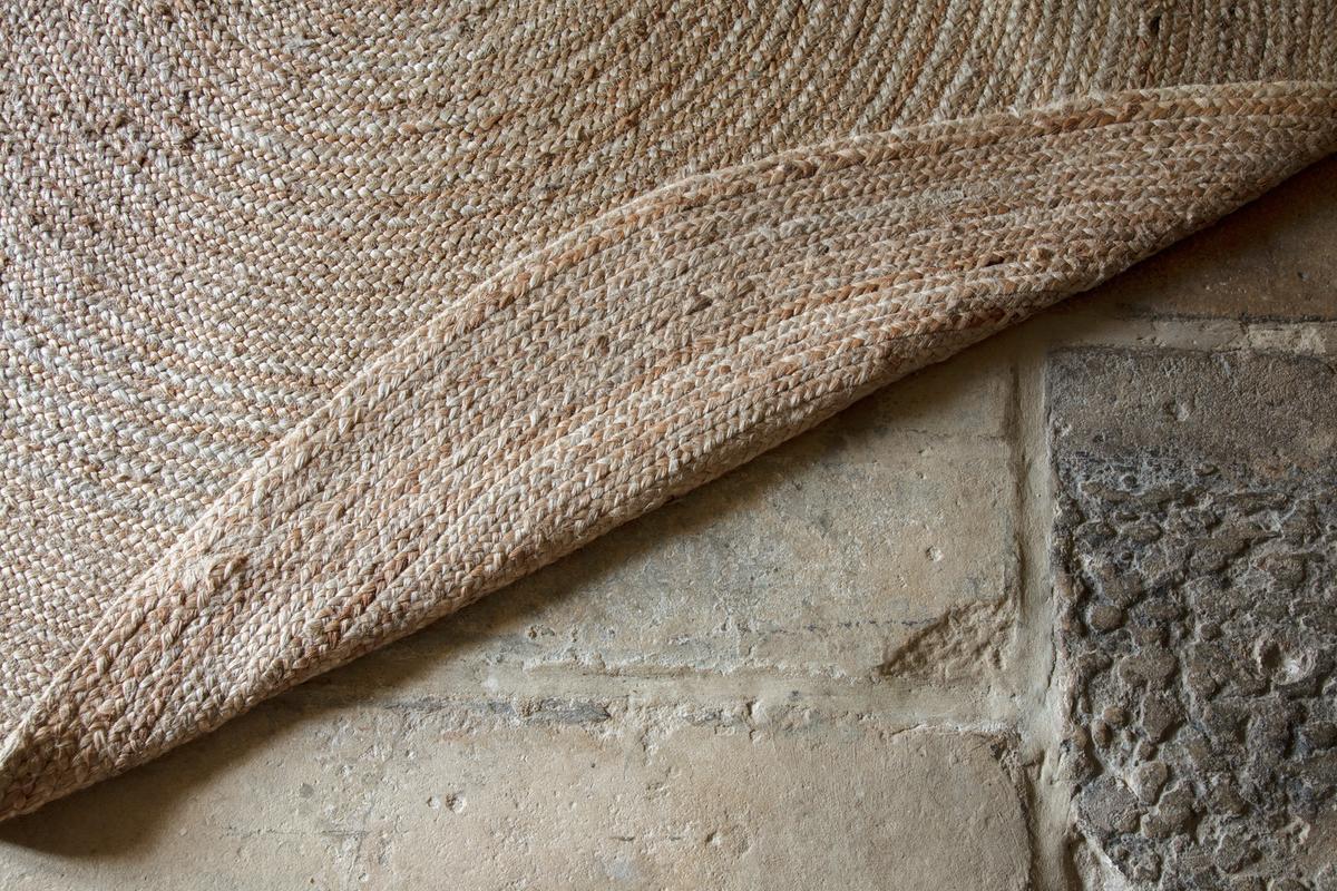 Our Braided Hemp circular rug is beautifully handwoven on traditional handlooms from natural hemp. The golden hues of hemp blend perfectly with braided weave, and make this a very tactile, eye-catching piece. This striking rug will bring warmth and texture to any home.