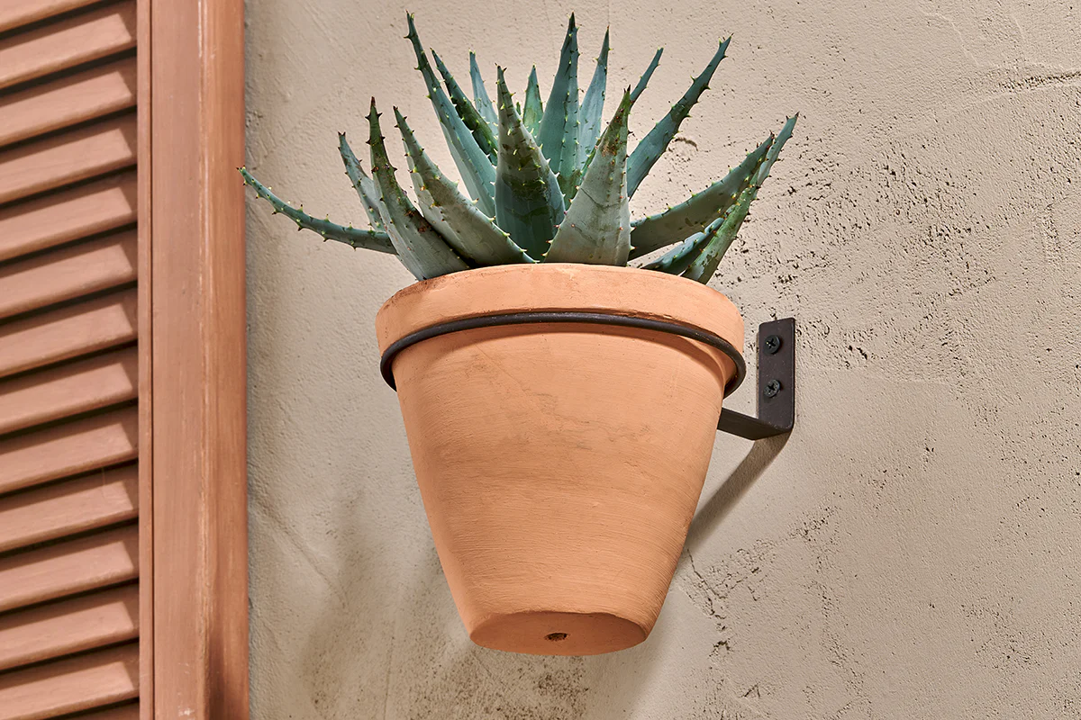 These single Jara wall hung planter has an attractive rust wall attachment and classic terracotta pot. Ideal for styling your own planting wall inside and out.