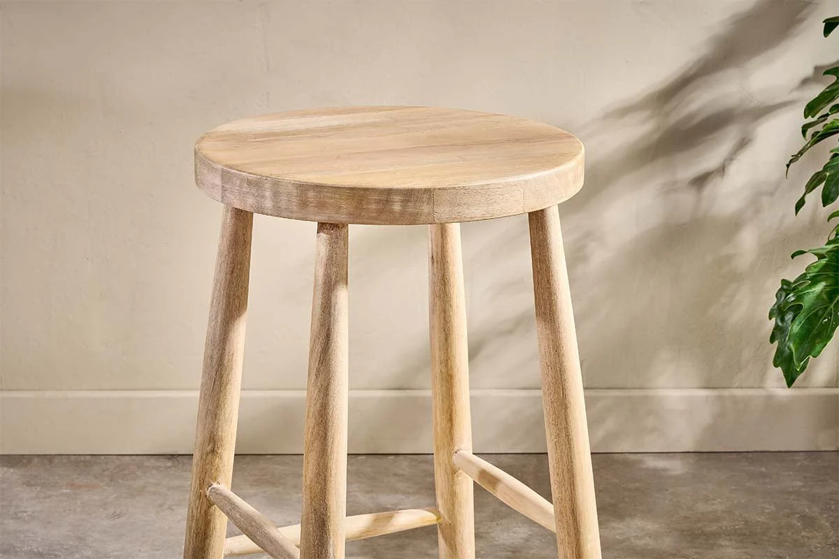 Mengwi Mango Wood Round Bar Stool - Natural