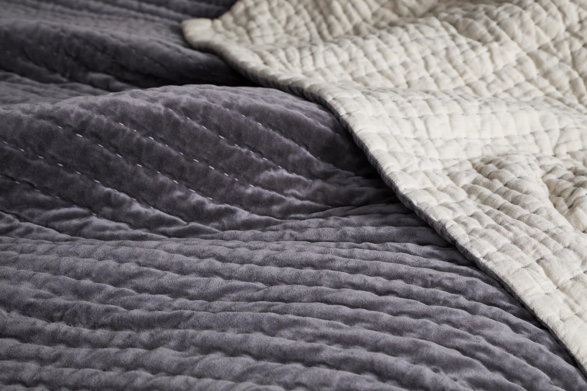 Nidra Velvet & Linen Bed Quilt - Charcoal—